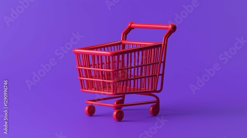 Empty red shopping cart on chrome wheels isolated in a retail store