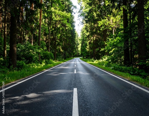 Empty road through lush green forest
