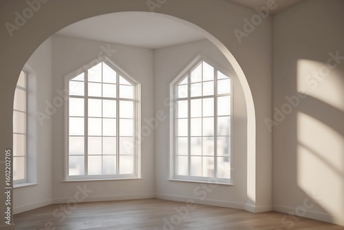 Empty Room Interior with Arched Windows and Sunlight - Modern Home Design Space
