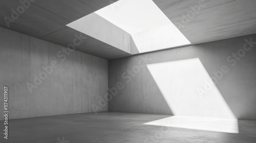 Empty room interior with concrete walls, grey floor with light and soft skylight from window. Background with copy-space. illustration