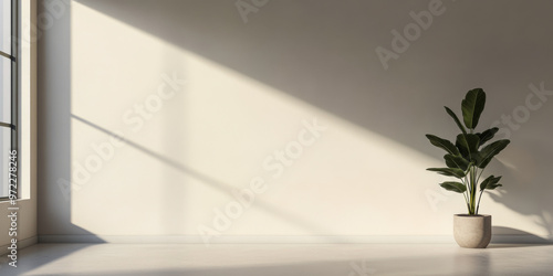 Empty room with a window providing natural lighting and casting shadows. Minimal residential interiors.