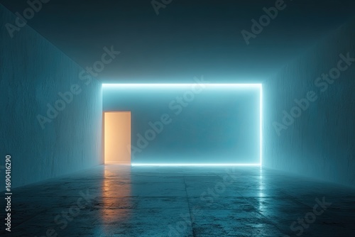 Empty room with glowing lines. Interior background with glowing lines