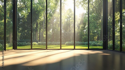 Empty Room with Large Window Showcasing Natural Light and Greenery