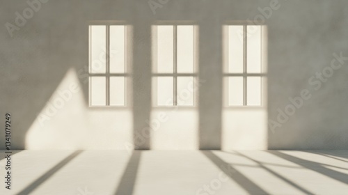 Empty room with sunlight casting shadows on a light beige wall