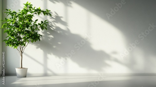 Empty Room With White Walls And Tree Shadows, Sunlight Warming The Space