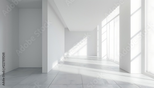 Empty room with white walls, concrete floor and large window. 3d rendering