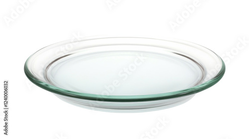 Empty round glass plate on transparent background, ready for food presentation