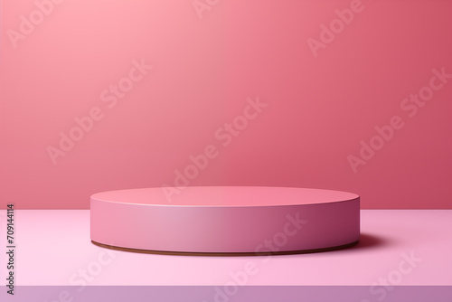 Empty round pink podium or pedestal for product branding advertisement on minimal pastel pink background. Front view.
