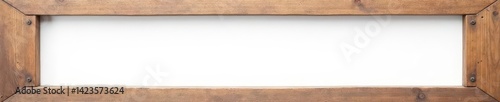 Empty rustic brown wooden frame, white background, photo, white