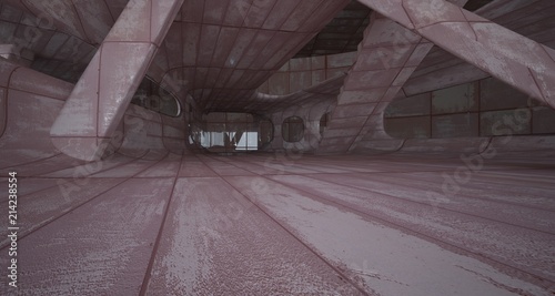 Empty smooth abstract room interior of sheets rusted metal . Architectural background. 3D illustration and rendering