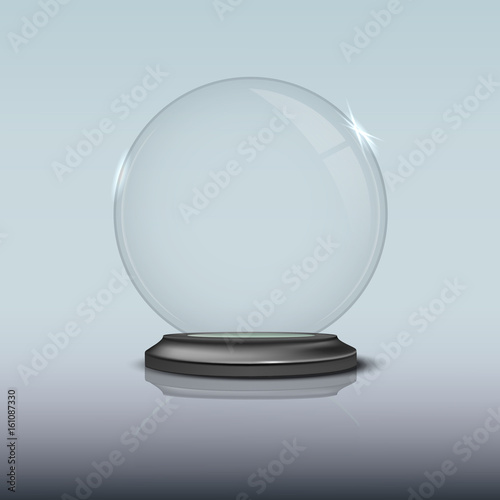 Empty snow globe on blue background. Vector template.