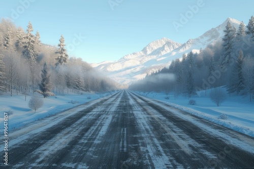 Empty snowy road stage landscape outdoors highway.