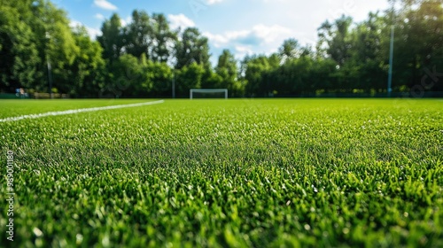 Empty soccer field with freshly cut grass, offering space for copy or text