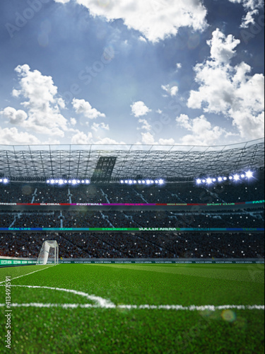 Empty soccer stadium in the evening light