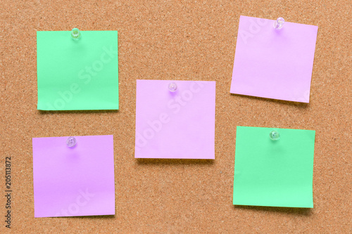 empty square green and purple pinned sheet on a brown cork reminder