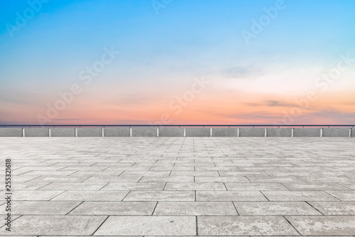 Empty square tiles and beautiful sky scenery
