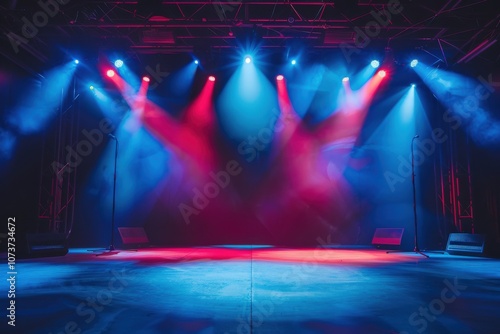 Empty Stage Lit with Red and Blue Spotlights