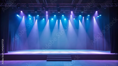 Empty Stage with Colorful Lights and Curtains in a Modern Performance Venue