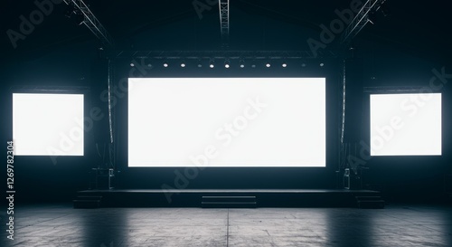 Empty Stage With Large Screens And Lights - Modern empty stage featuring large blank screens, ambient lighting, and minimalistic design, perfect for events, presentations, or performances