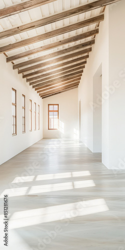 Empty storage room, a warehouse, in beige tones. Luxurious industrial Real Estate composition.