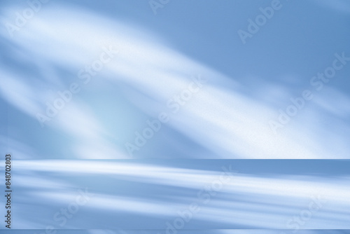 Empty studio interior background and backdrop and product display stand with shadow white and blue on blank text background for inserting text.