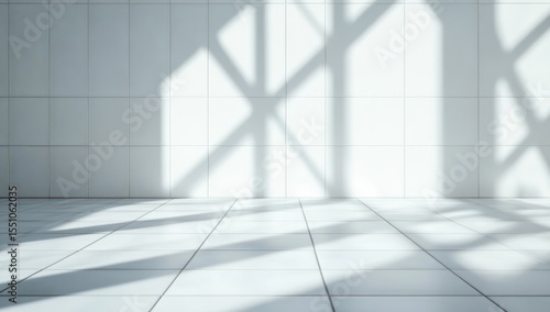 Empty, sunlit room with white tile