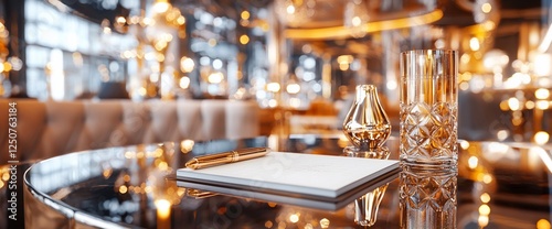 Empty Table in Luxurious Bar Interior for Note-Taking