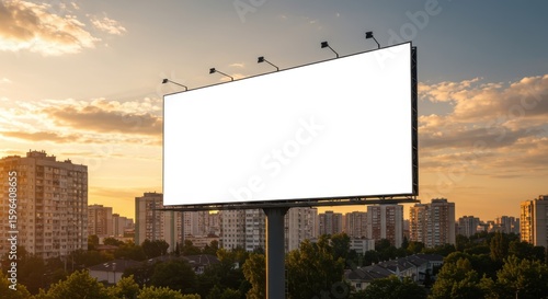 Empty Urban Billboard with Sunset Sky for Outdoor Advertising Mockup