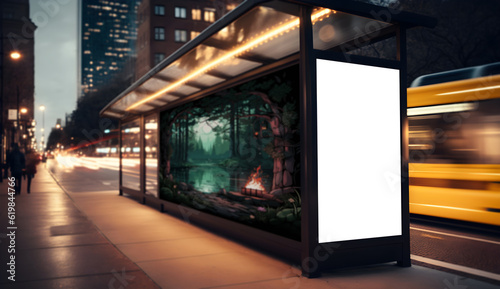 Empty Verticle space advertisement board, blank white signboard on roadside in city, Vertical blank billboard in city in night time, White signboard or lightbox on roadside for advertisment placement