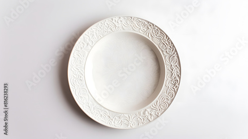 Empty vintage porcelain plate cutout Textured white dish with a floral pattern isolated on a white background Beautiful tableware crockery for food design Crockery concept Front view : Generative AI
