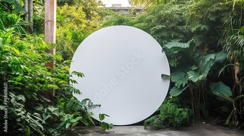 Empty white banner with mock up space white of signboard on plants wall space for text