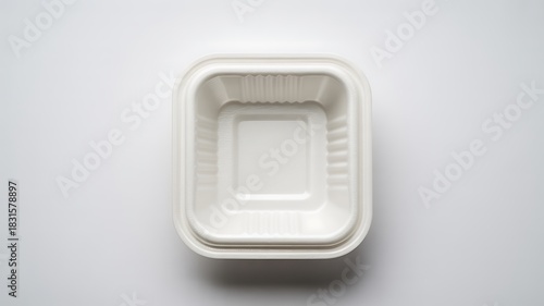 Empty White Biodegradable Food Container on White Background