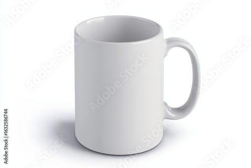 Empty white ceramic mug with handle.