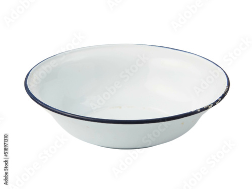 Empty white ceramic plate with blue rim on white background, blue plate, cup, white background, round