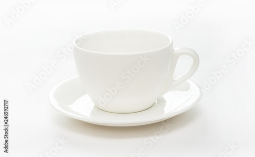 Empty white coffee cup on a white background.