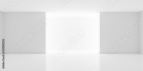 Empty white interior room with indirect light from back, modern architecture template background