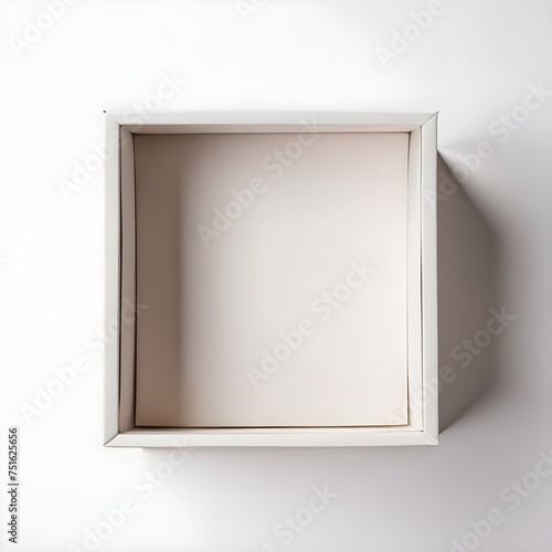 Empty white paper box. White box without lid. Top view. AI image.