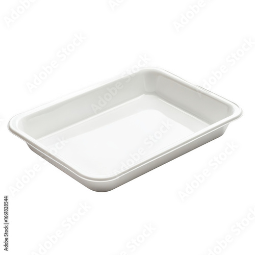 Empty white plastic tray. Isolated [Transparent Background PNG].