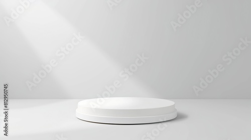 Empty white podium on light grey background Minimal template Round showcase for cosmetic product advertising Abstract display or showcase Spa and beauty mockup Front view Copy space : Generative AI