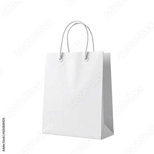 Empty White Shopping Bag with Handles for Retail and Packaging Use
