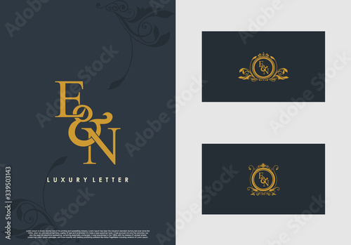 EN logo initial vector mark. Gold color elegant classical symmetric curves decor.