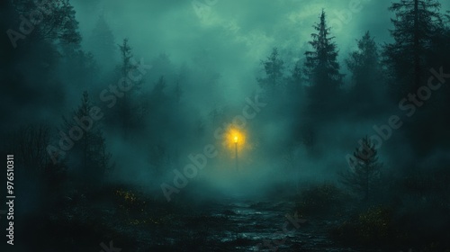 Enchanted Forest Clearing: Mysterious Lantern Glow and Ghostly Apparition