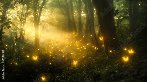 Enchanted forest ethereal creatures glowing elements mystical atmosphere soft-focus