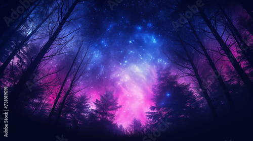 Enchanted Forest with Nebula Sky
