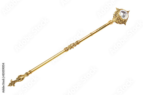 Enchanted Golden Orb on Crystal Wand on White or PNG Transparent Background.