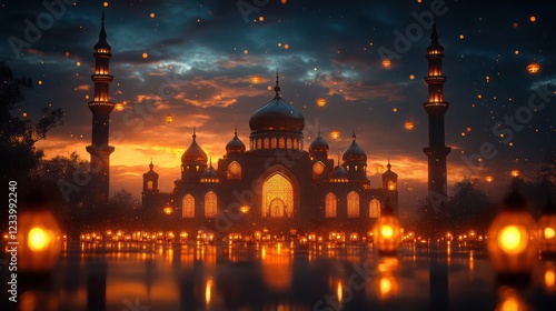Enchanted Mosque at Sunset: A Serene Ramadan Night