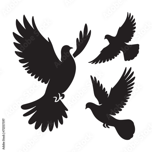 Enchanted Shadows: Bird Beauty Silhouette Set Creating Magical Outlines of Pigeons in Motion - Pigeon Silhouette