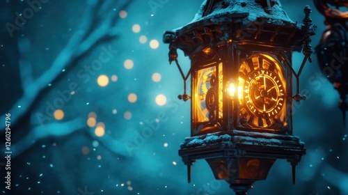 Enchanted Winter Clock Lantern: A Magical Snowfall Night
