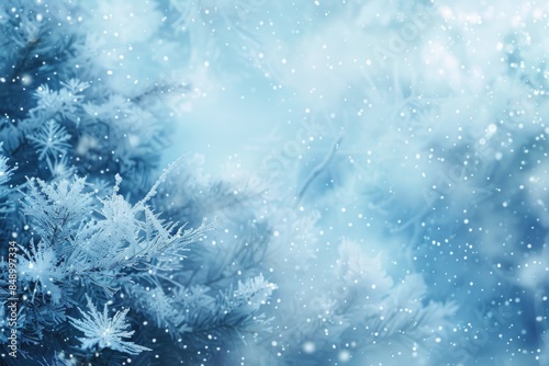 Enchanted Winter Forest Snowfall with Sunlight Through Frosted Branches