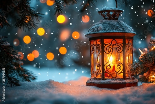 Enchanted Winter Night: A Glowing Lantern in Snowy Wonderland